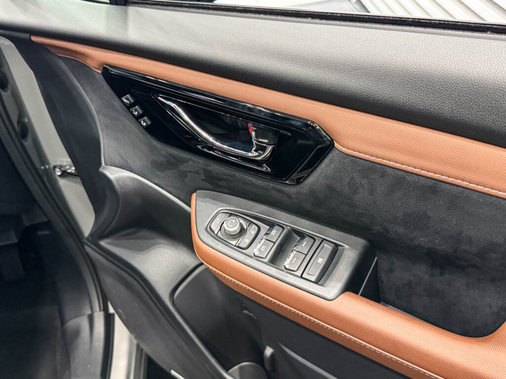 ドアを開けた瞬間に目に入るドアトリムは、Premium S:HEV EXのキャラクターをとても分かりやすく表現しています。派手さはありませんが、決して素っ気ないわけでもなく、落ち着きと丁寧さが同居した印象です。近くで見たり、実際に触れたりするほど、このグレードが「上質路線」であることが伝わってきます。