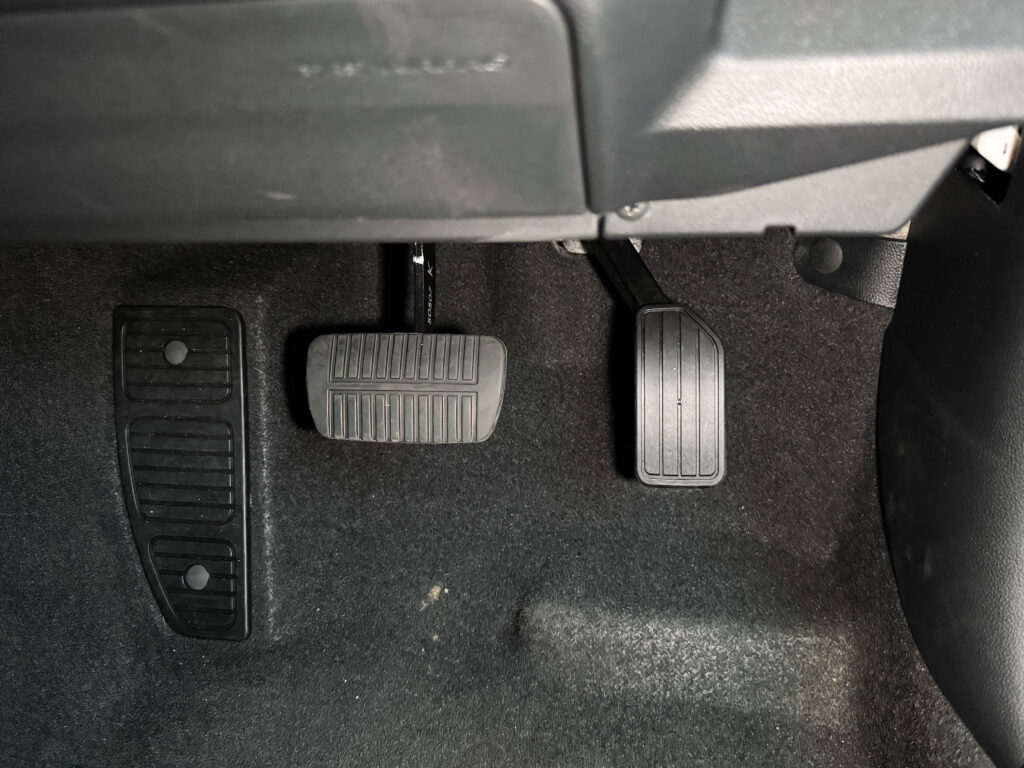 ペダル面には適度な滑り止めが施されており、雨の日や長時間運転でも安心感があります。踏み始めのタッチは穏やかで、ストロングハイブリッドらしい滑らかな加減速と相性が良い印象です。