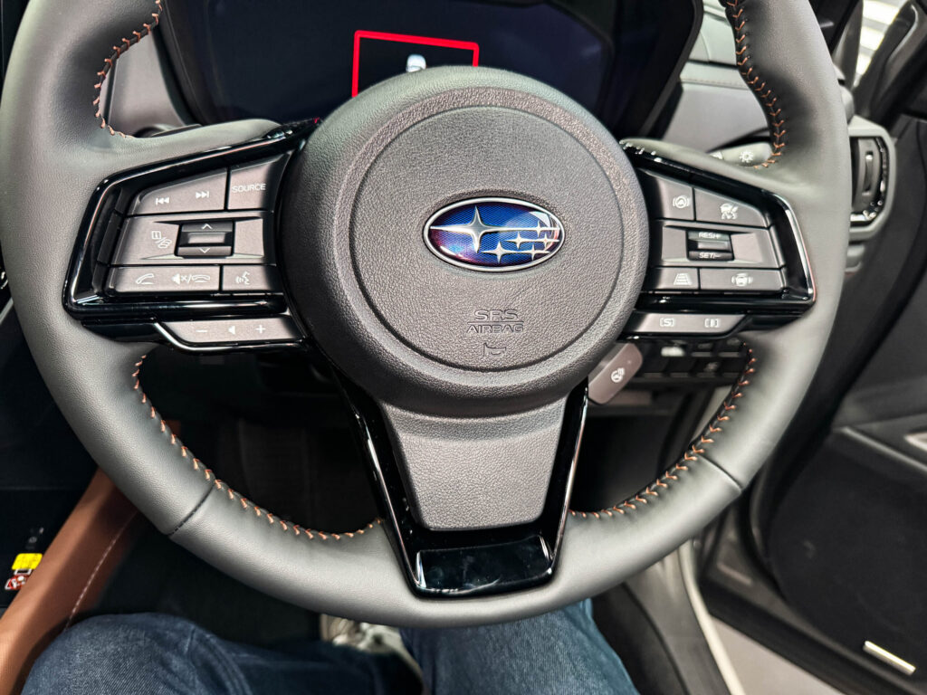 ステッチはPremium専用の落ち着いたブラウンカラーが採用されており、主張しすぎないのに確実に上質感を演出しています。X-BREAKのタフ寄りな表情や、SPORTのスポーティな演出とは明確に異なり、あくまで長時間の運転を前提とした“大人向け”の雰囲気です。グリップ部のレザー表面もきめが細かく、日常使いで手触りの良さを実感できそうです。