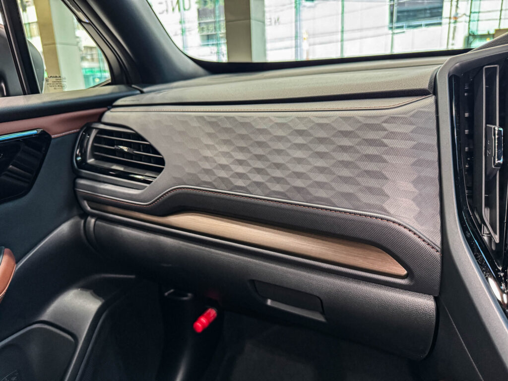 実車を見た印象としては、「触る場所」と「触らない場所」をきちんと考えて作られている、という点が好印象でした。ドライバーがよく視線を向けるエリアや手が届く部分は上質に、その他は割り切って実用的に。Premium S:HEV EXらしい、落ち着きと合理性を兼ね備えたインパネだと感じます。