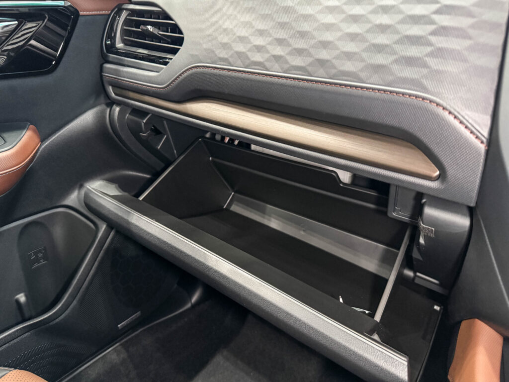 インパネ上部はソフトパッドが使われ、触れた瞬間にやわらかさがあります。一方で下部やグローブボックス周辺はハード素材とし、見た目と実用性を両立させています。この切り替えが自然で、写真でも質感の差が分かりやすいですね。