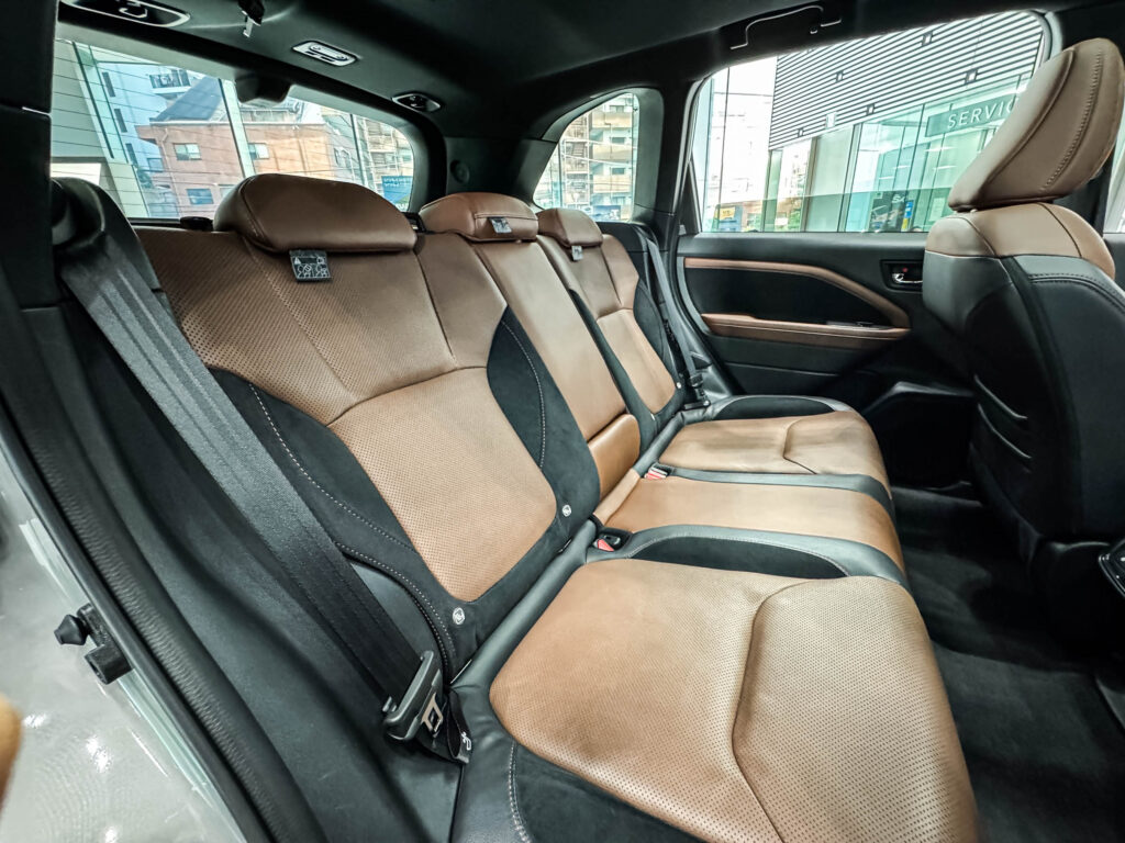 Premium S:HEV EXの後席は広さだけでなく、この色と素材の選択によって“どうくつろぐか”まで変えられる空間になっているのが、大きな魅力と言えそうです。