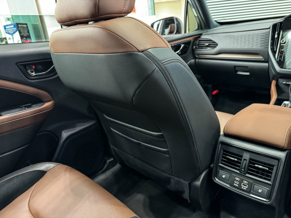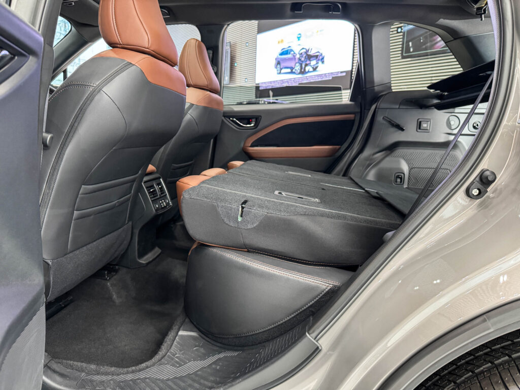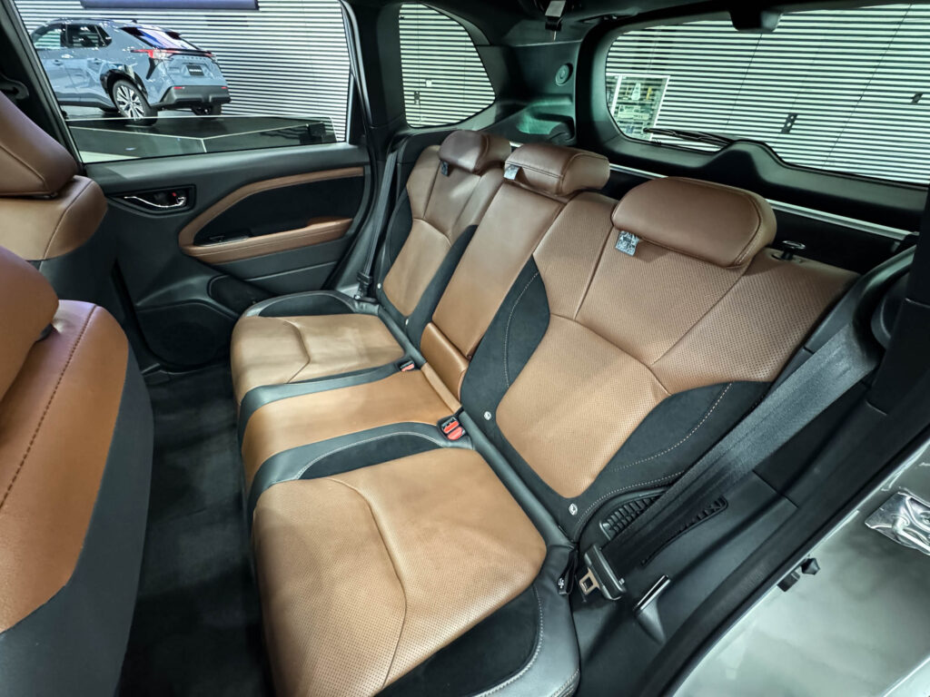 新型フォレスター Premium S:HEV EXは、シートを本革(ナッパレザー/ウルトラスエード®)に変更すると、後部座席の色味そのものが大きく変わるのが特徴です。