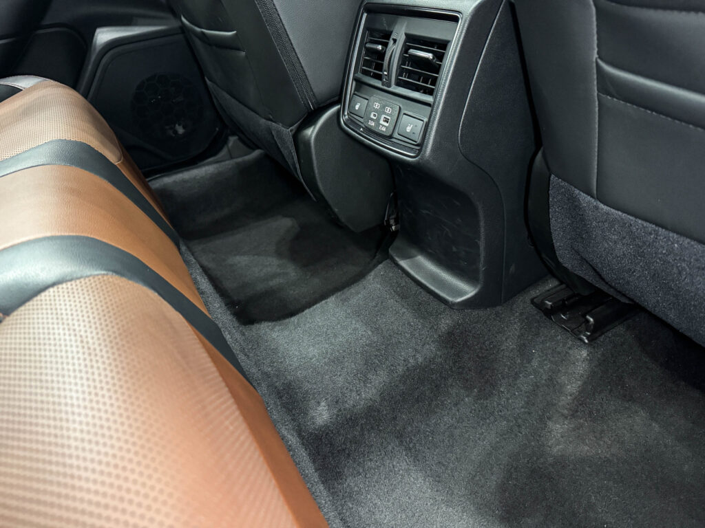 その結果、後席の視界は明るいグレーから、深みのあるブラウンとブラックに囲まれた落ち着いた空間へと一変します。