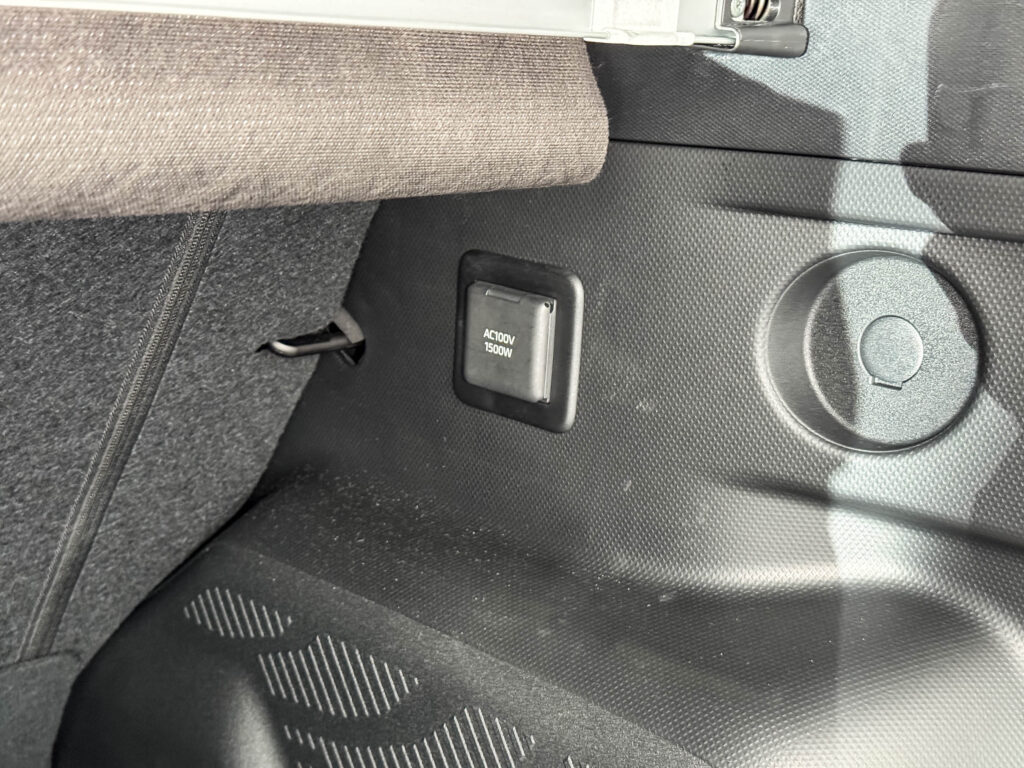 走行可能なREADY ON状態では、大容量バッテリーから家庭用電源がそのまま使えるため、電気ケトル、電動クーラーボックス、ノートPCなども問題なく動かせます。